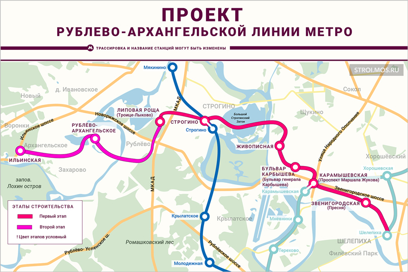 «Новая линия метро протянется на северо-запад столицы от станции БКЛ «Шелепиха» до территории Рублево-Архангельское. Она обеспечит транспортное обслуживание этой площади и максимального количества проживающих и работающих в районах Митино, Строгино и Хорошево-Мневники. Для них время в пути сократится в 1.5 раза», - подчеркивали представители столичного Стройкомплекса.