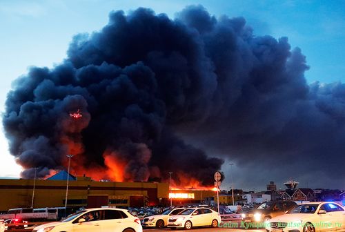 8 октября 18:21 Из горящего ТЦ "Синдика" у МКАД эвакуировано более 3 тыс. человек