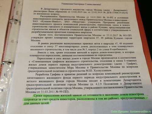 Предложения от ПИКа и их план переселения квартала в Кунцево