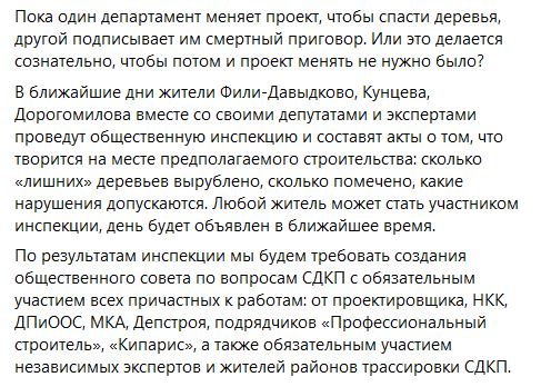 | "Согласно ответу Департамента природопользования и охраны окружающей среды города Москвы на обращение активистов, на данной территории нет животных или растений, занесенных в Красную книгу."