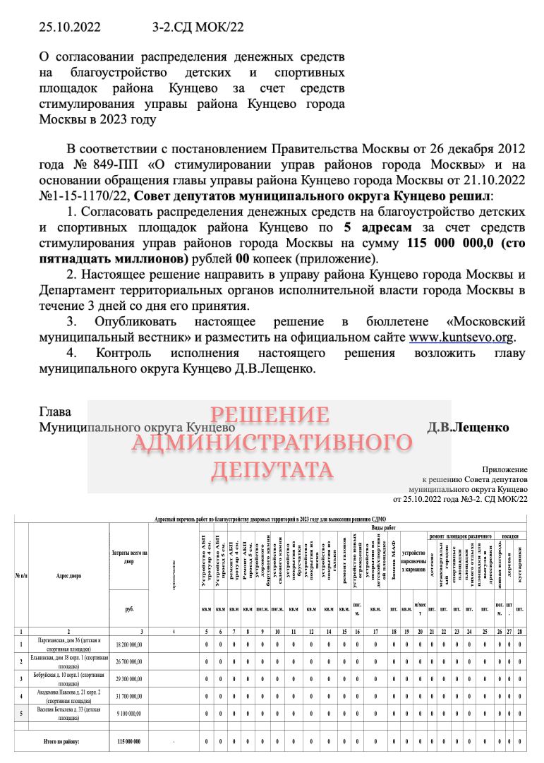 Благоустройство, которое мы не заслужили На спешно объявленном за сутки внеочередном заседании депутатам предлагается согласовать 115 миллионов на благоустройство по 5-ти адресам в Кунцево.