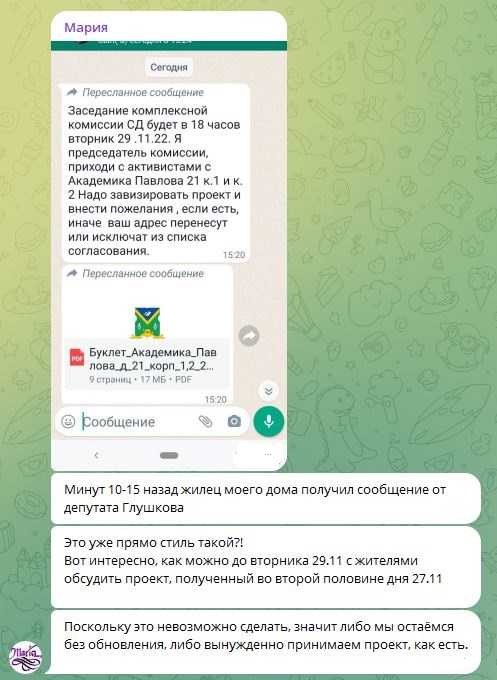 Попов Евгений, вот именно из-за такого коррупционного согласования мы потом и имеем результат, как с хоккейной площадкой в Рублево. Вам это еще тогда пытались объяснить, но вы не услышали. Очень надеемся, что сейчас услышите и c Дмитрием Лещенко потребуете у управы и ГБУ полноценные материалы для принятия полноценного решения, исполнение которого потом можно будет контролировать его выполнения. Дмитрий Лещенко, что это за благоустройство на Василия Ботылёва 33? Где остальные адреса? Почему не обсуждалось с жителями?