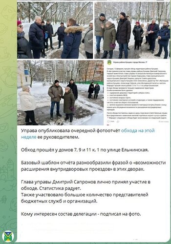 | Управа. Я не дождусь ответа Управы на моё обращение по поводу уборки снега с тротуаров внутридворовой территории. Прошло уже две недели, а Управа и Жилищник хранят молчание. Снег на тротуарах от подъезда до подъезда завалены сугробами и всё это на улице Академика Павлова у домов 10 и 16. А Вы говорите Управа с обходом территорий. Нашу территорию он обходит стороной.